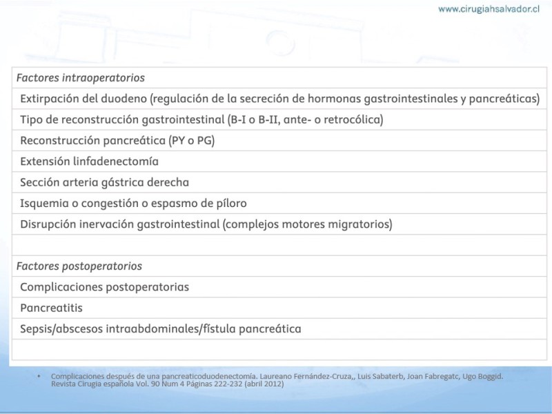 Cirugía de Whipple: Complicaciones post operatorias